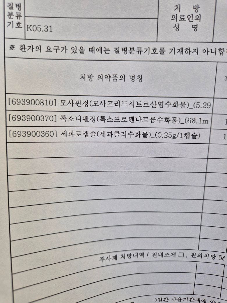 치아발치하고 받은 항생제 진통소염제 위장약은