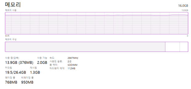 뭐 다른거 켜논것도 없고 크롬이랑 디스코드만 켜놨는데 램 사용률 88%입니다.