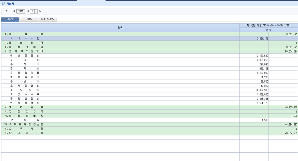 재무상태표와 손익계산서 금액이 다른 경우에는