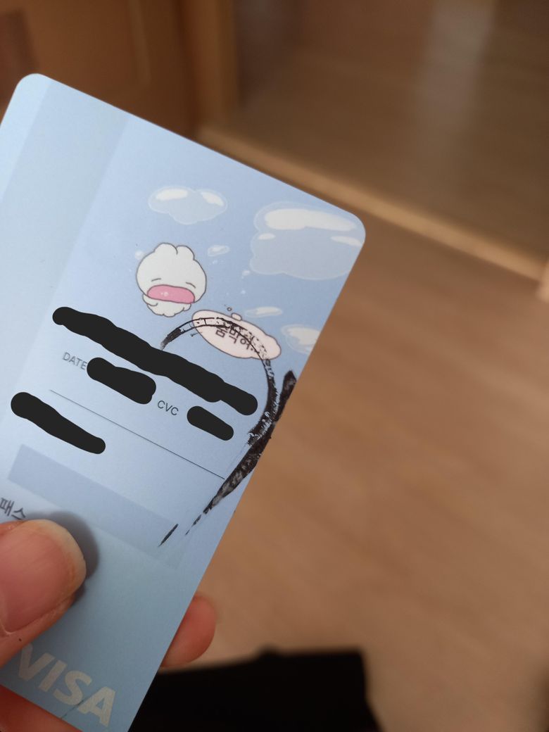 카드에 테이프 자국도 없는데 지갑 가죽이 붙어서 때니까 가죽이 떨어져서 붙었는데 긁어도 안때지네요 사용하는 카든데 훼손없이 때는 방법 있나요