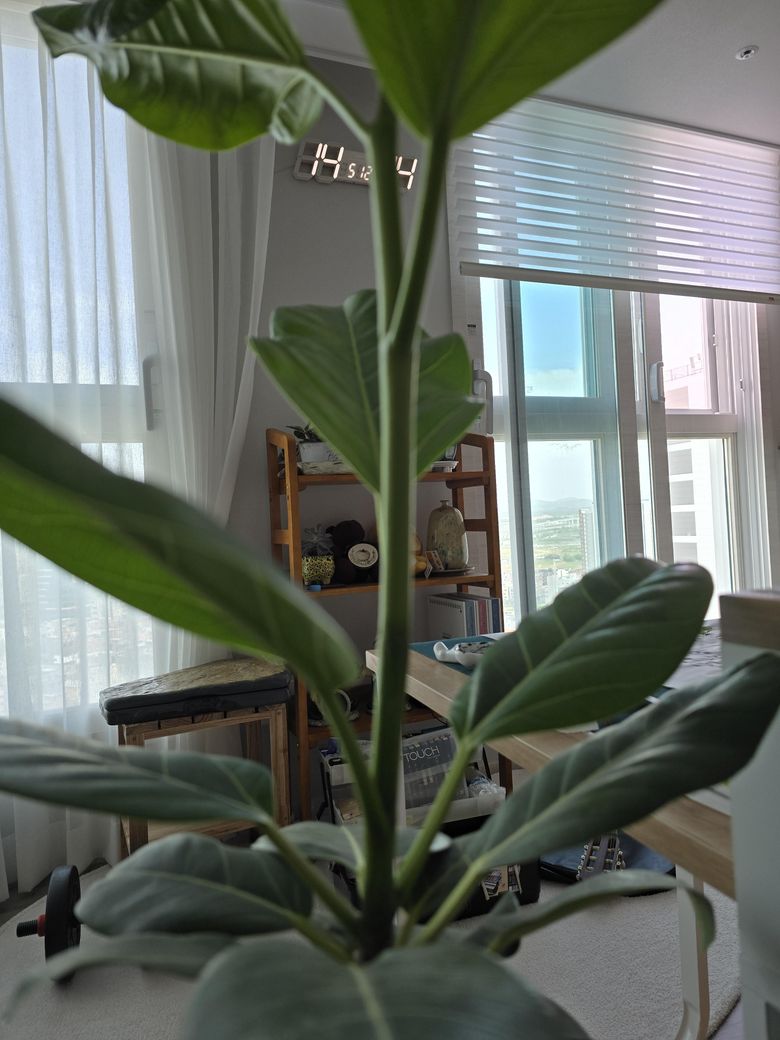 올봄 갑자기 대나무 크듯 쑥 자라더라구요. 잎도 남자 어른 손바닥만큼 크고 중심 줄기가 휘청일까 불안불안할 정도로 웃자랐습니다. 이게 정상인지 무엇이 부족하거나 넘쳐서 그런 건지 알고 싶습니다. 어떻게 해줘야할까요?
