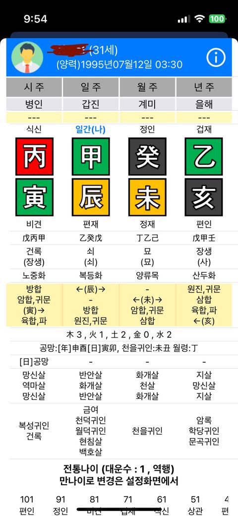 첫번째사진이 남자사주 1995.07.12 양력