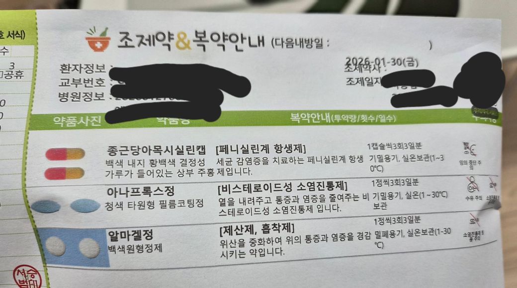 처방받으신 치과약들과 인데놀정은 함께 복용하실 수 있습니다