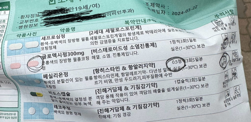 항생제가 있어서 빼먹고 복용하시는 것은 안됩니다. 저녁에는 항생제만 복용하시고 과음은 하지 않도록 해주세요.