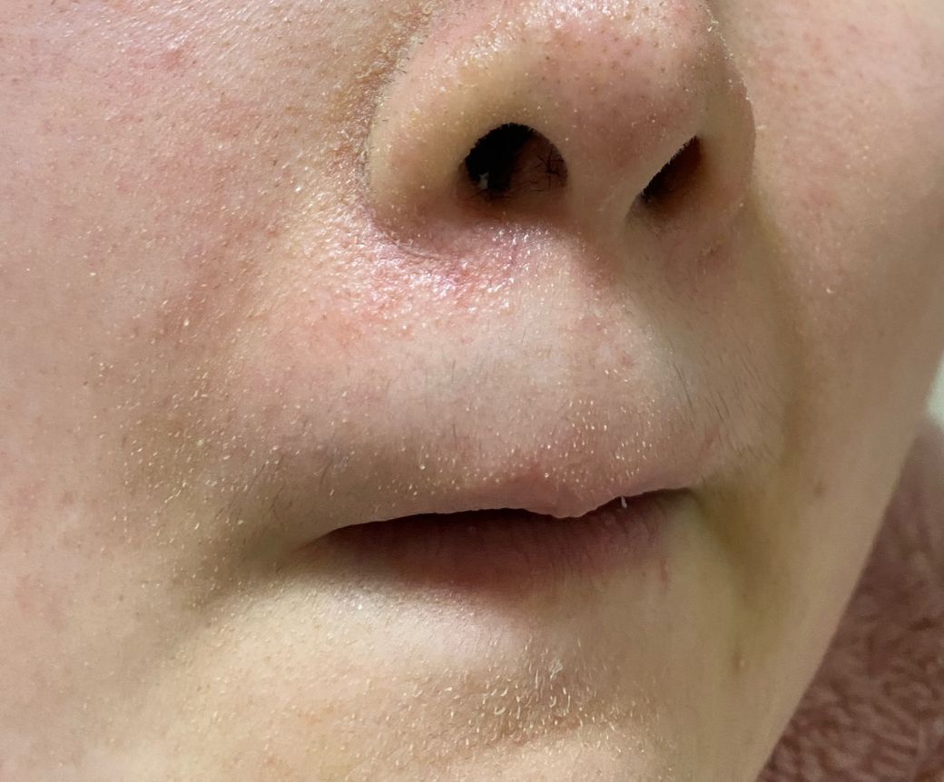 코 양옆의 각질과 가려움, 하얀 발진처럼 일어나는 증상은 지루성 피부염 악화 또는 피부 장벽 손상 때문일 가능성이 높습니다. 현재 세안제는 순한 약산성 제품으로 바꾸고, 유분이 너무 많은 크림보다는 수분감 위주의 보습제를 사용하는 것이 좋아요. 또한, 피부가 가렵다면 항히스타민제 복용을 유지하면서, 피부 진정을 위해 알로에젤이나 판테놀 성분이 함유된 제품을 사용하는 것도 도움이 될 수 있습니다