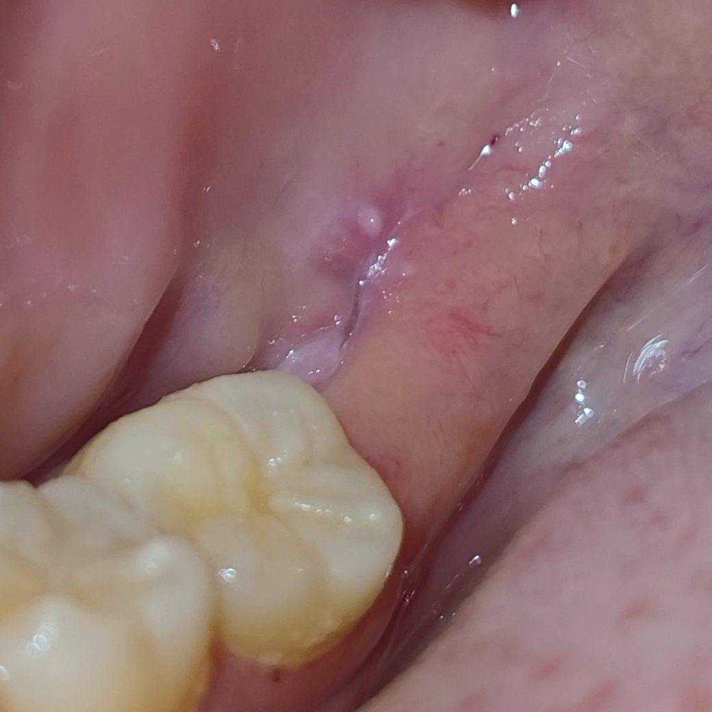두번째 사진은 사랑니 뽑은 자리에 흔적이 아직 남아 있는 것으로 보입니다.