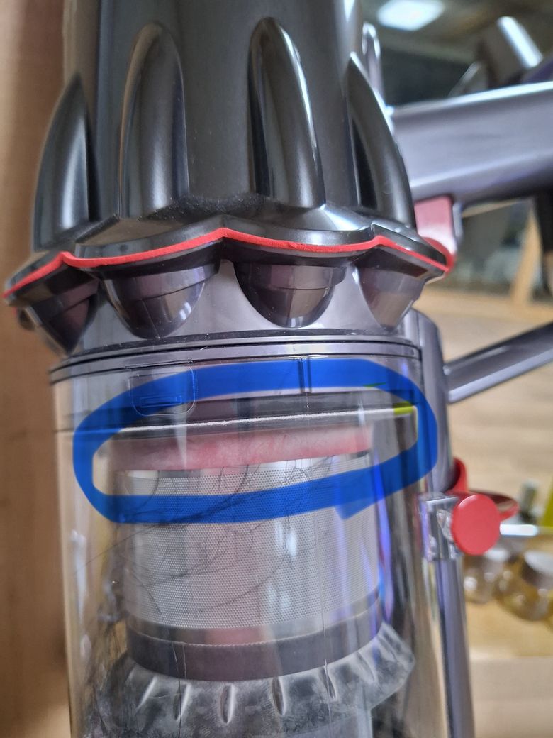 다이슨 V10 모델의 먼지통 내부 빨간 고무링은 부분 교체가 가능합니다 다만 공식 서비스 센터에서는 해당 링만 따로 교체해주지 않고 먼지통 전체를 교체하라고 권하는 경우가 많아 비용 부담이 클 수 있습니다