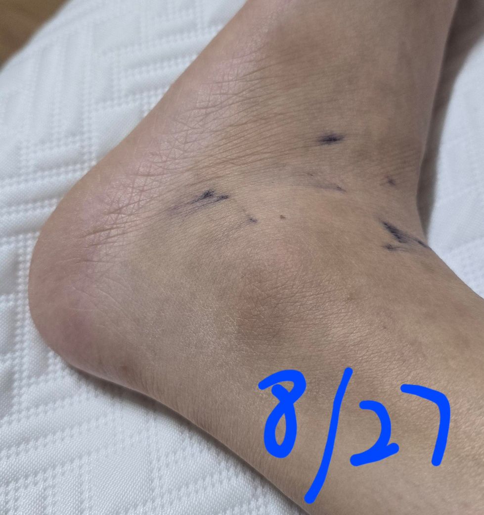 원랜 노란멍만 있었는데 왜 어제 갑자기 피멍이 보일까요? (볼펜자국 혼동 주의)
