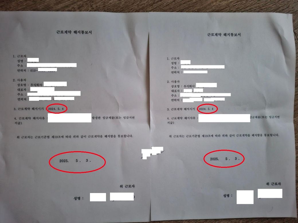 근로계약해지통지서(임금체불) 제출 퇴직 해지시기 날짜 오류 있는데 이후 퇴직 날짜를 재 협의했는데 퇴직 절차 유효한가요?