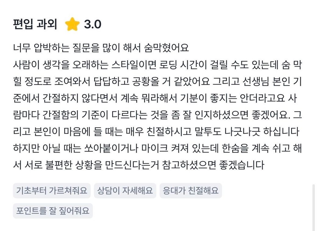 이는 개인적 경험에 기반한 평가로, 명예훼손이 아닙니다.
