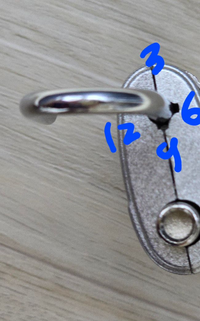 고리를 6시 홈에 맞춰 넣으래서 맞춰서 밀어넣고 새 비번 설정 후 고리를 다시 올리라고 되어있어서, 똑같이 따라하고 나서 밀어넣은 고리를 다시 뽑아올리려고 해봤는데요.