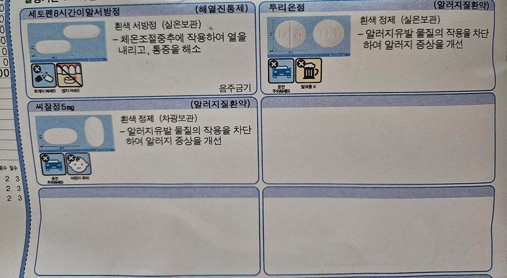 첨부한 사진의 약들을 먹고