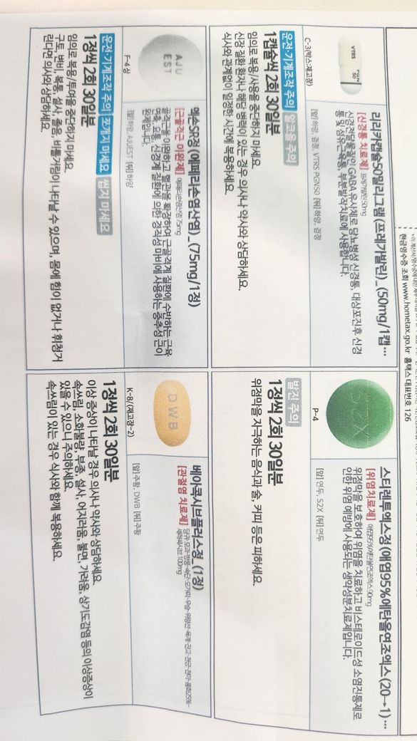 허리디스크때문에 먹는 약이랑 원형탈모 때문에 먹는약