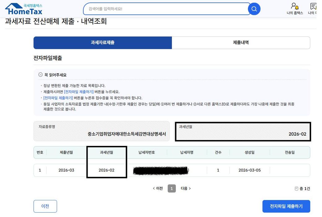 홈택스에서 파일을 제출하려고 보니 과세년월이 26년 2월로 되어있는데, 상관없고 25년 귀속 연말정산에 적용되나요?