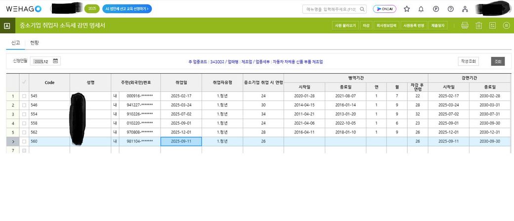 2025 연말정산 때문에 중소기업취업자소득세감면파일을 위하고에서 만들고 업로드 하려고 합니다.