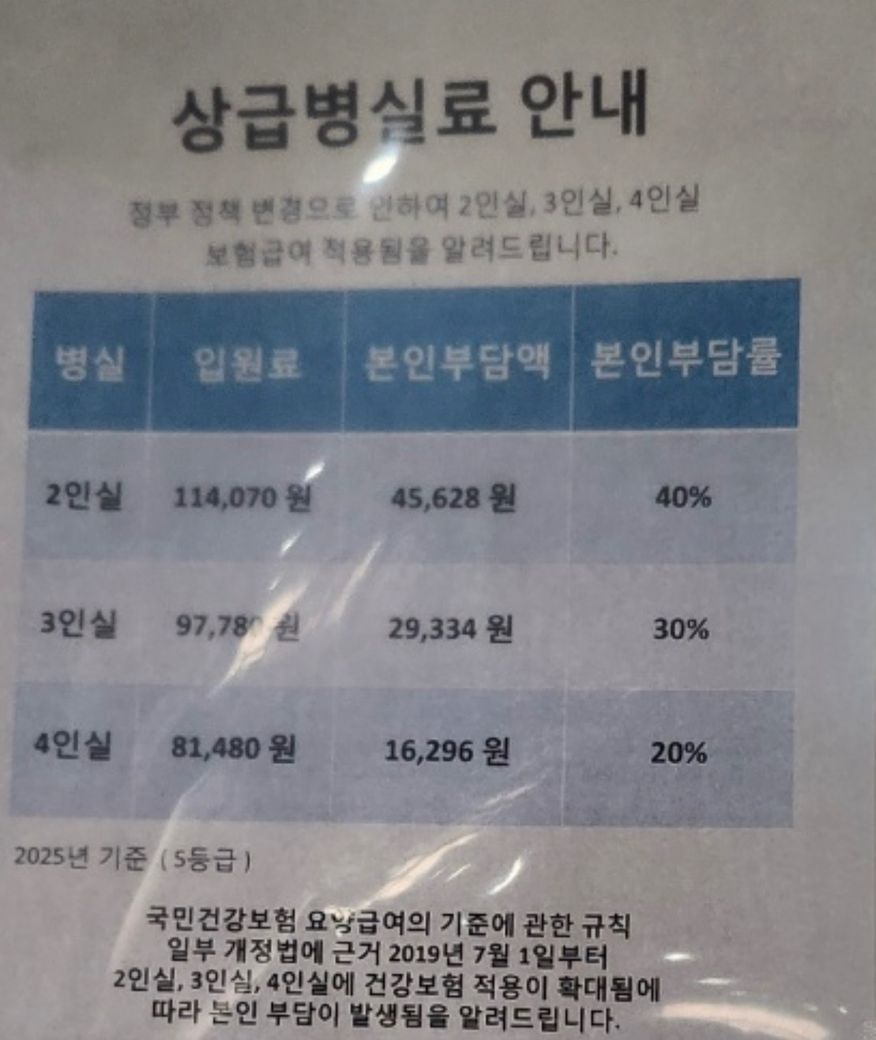 어느병실을 쓰던 병실료가 본인부담액에 써있는 만큼