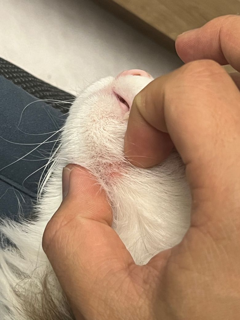 고양이 턱 밑에 털이 비어있는것 같아 봤더니