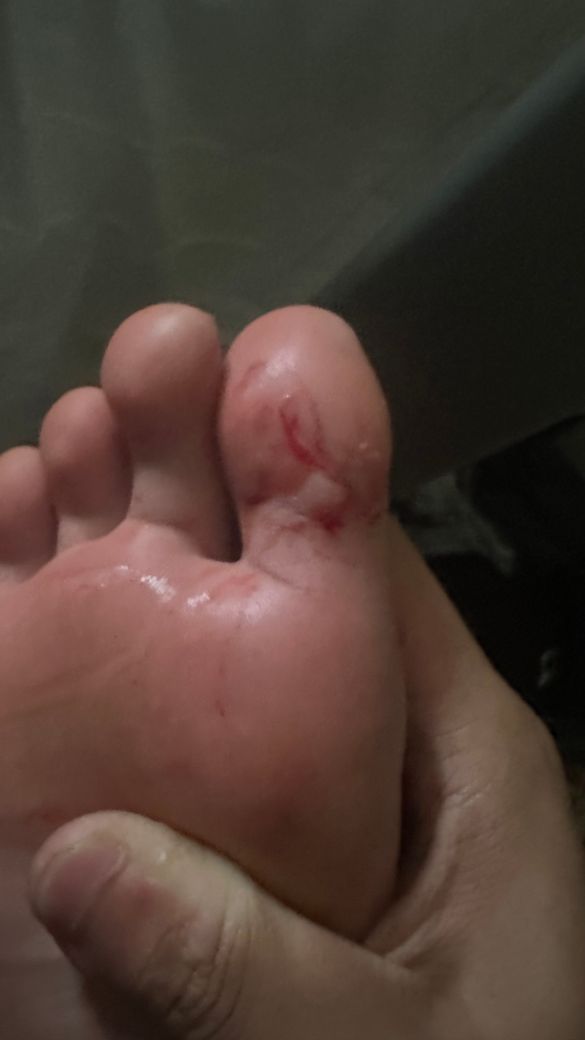 슬리퍼 마찰로 인한 엄지 발가락 살 찢어짐