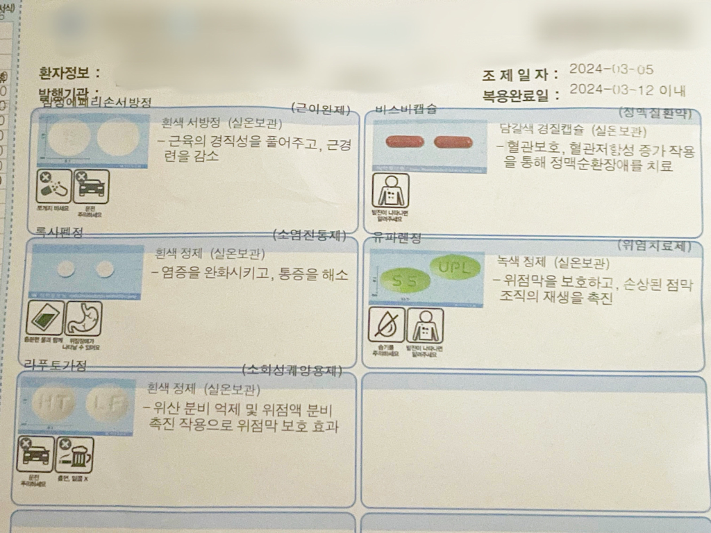 처방받으신 약들에 들어있는 위장약은 속쓰림 등을 줄여주기 위한 목적으로 사용됩니다