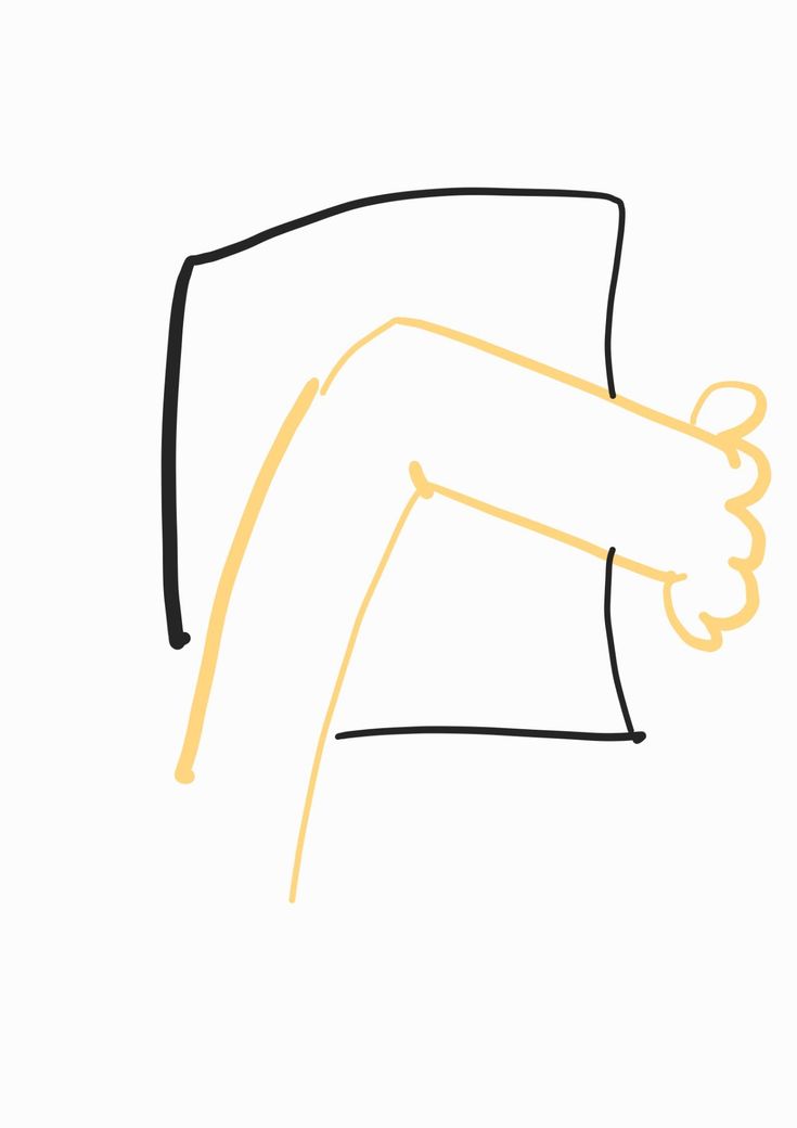 내측(접히는 주름 쪽, 안쪽)을 보려면 팔을 약간 외회전시키거나, 내측이 필름(네모판)에 더 밀착되도록 자세를 잡아야 합니다.