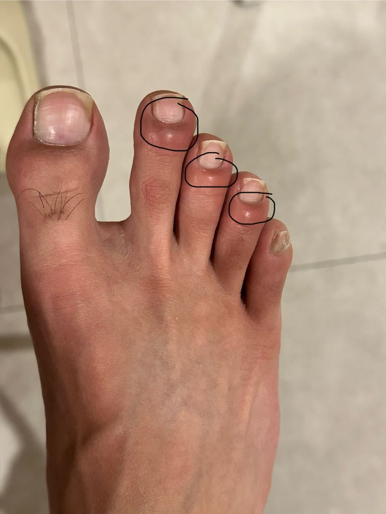 일주일 뒤에 세번째 , 네번째 발가락도 부어서요