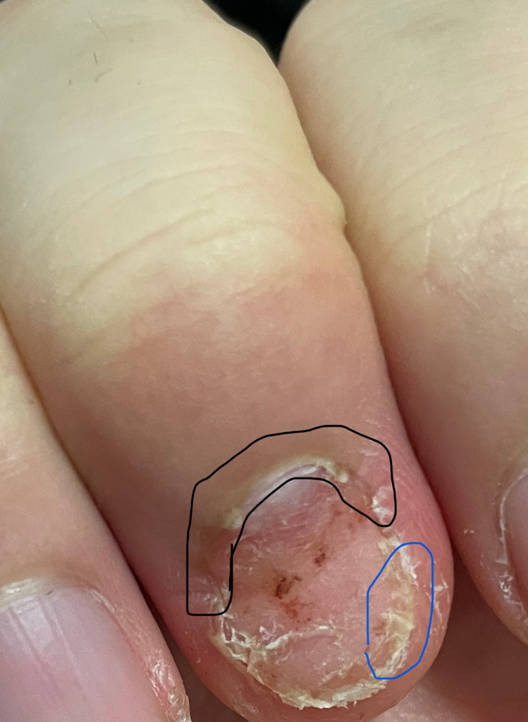 1~2번 사진과 같이 손톱이 정상적으로 회복되고 있지않은 것 같은데 손톱이 영구적으로 손상되어 아예 자라지