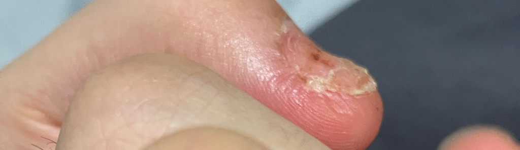 아직 다 자라나오지 않아 큐티클층의 각질같은것이 탈락된것으로 보입니다.