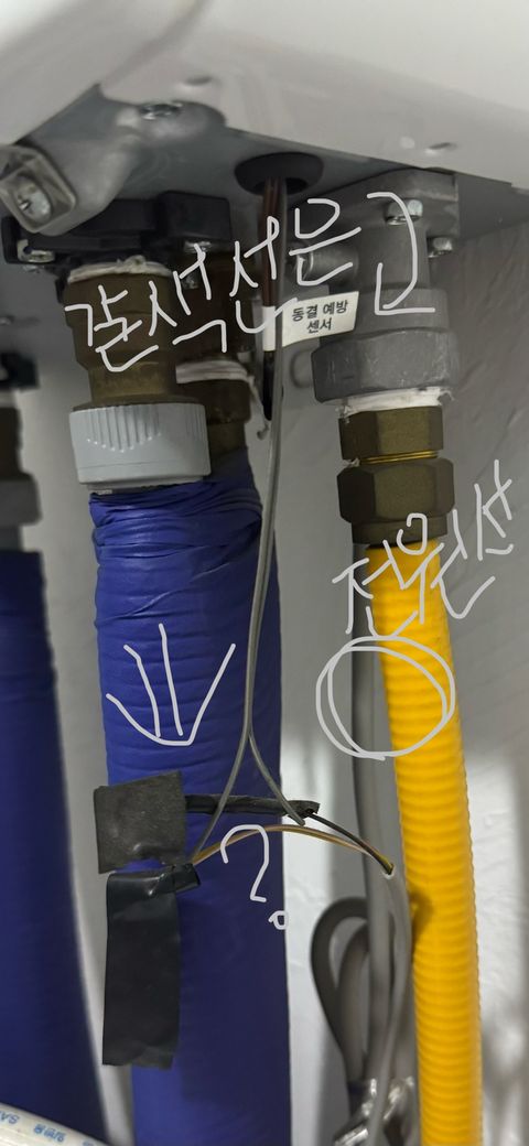 갈색 짧은 선은 동결예방센서라고 스티커가 붙여져있고