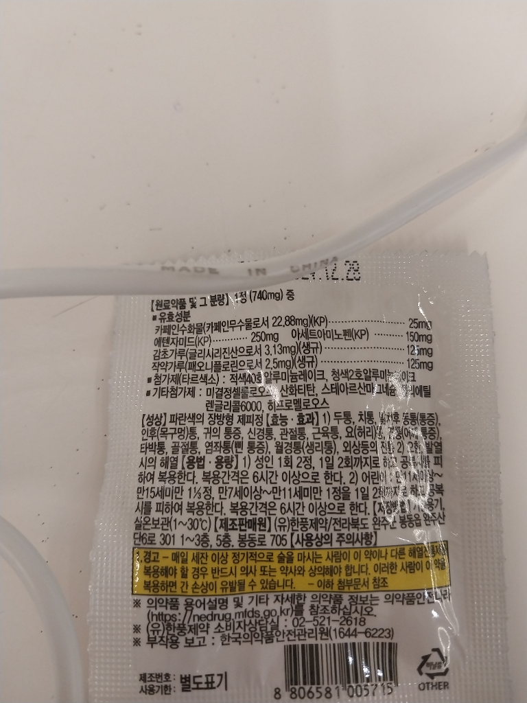 모두펜정에는 아세트아미노펜 / 작약 / 감초 / 에텐자미드 / 카페인수화물을