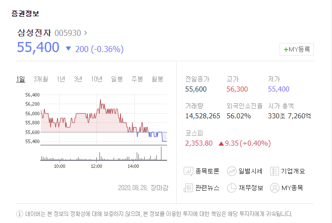 삼성전자면 '삼성전자'를 검색한 뒤