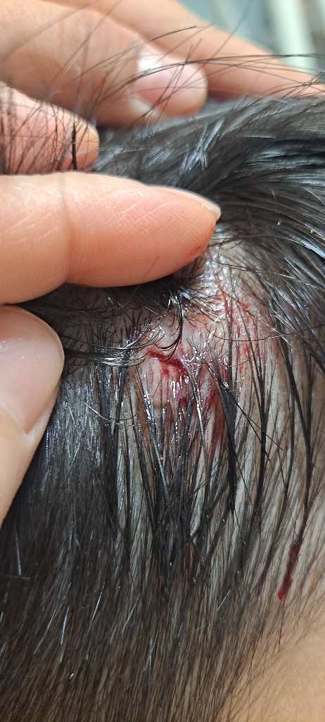 1-2회 정도의 봉합이 필요할 것이라 보이는 상처입니다. 아이가 심한 두통을 호소하거나 점점 심해지는 두통이 나타나는 경우, 말이 어눌해지거나 표정짓기 어려워하는 경우, 팔이나 다리에 힘이 빠지는 등의 상황에서는 즉시 응급실을 방문하시기 바랍니다. 그렇지 않고 잘 지낸다면 가까운 외과계열 의원을 어디든 방문하시면 되겠습니다.