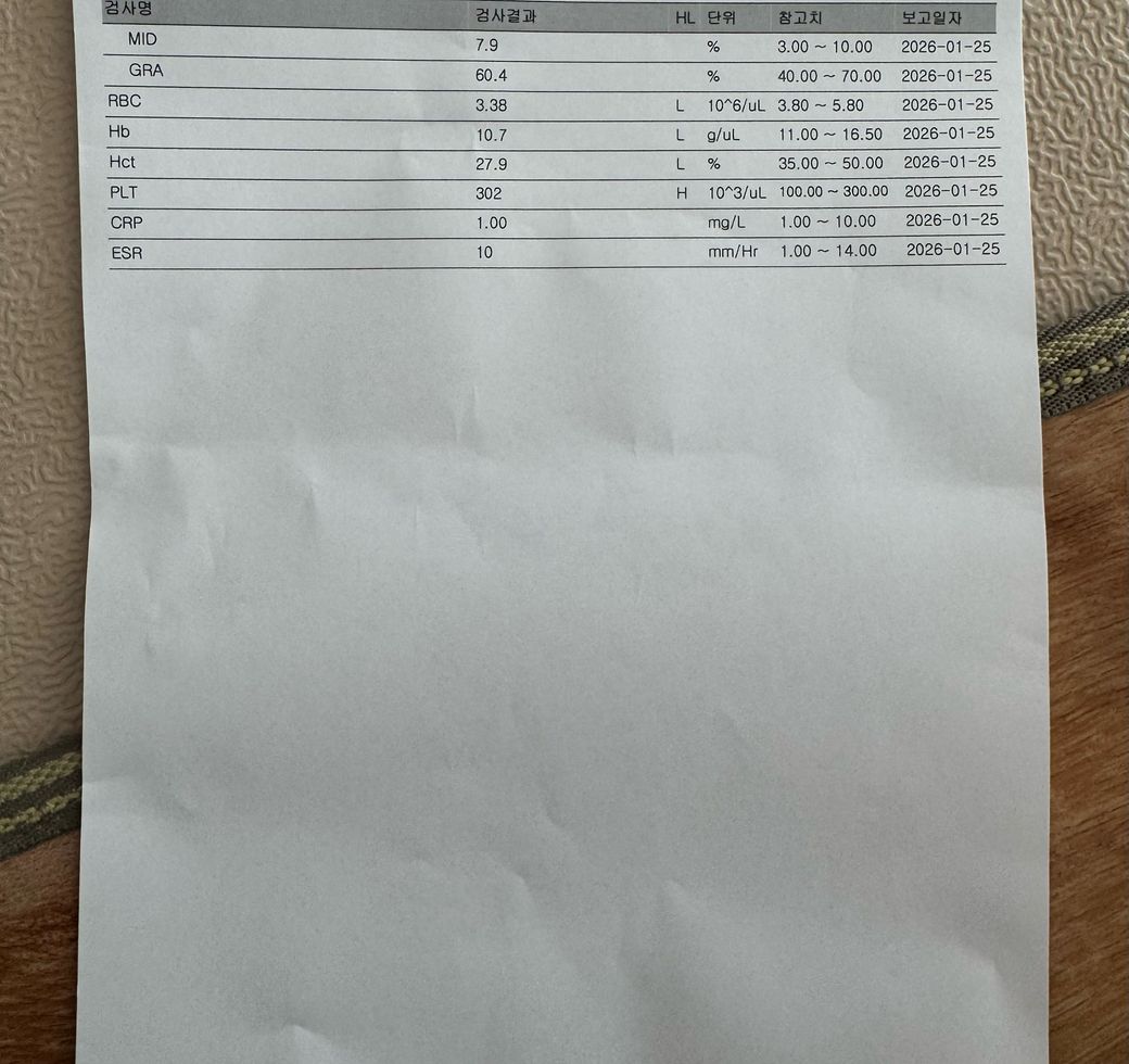 피검사결과지 올려드릴게요
