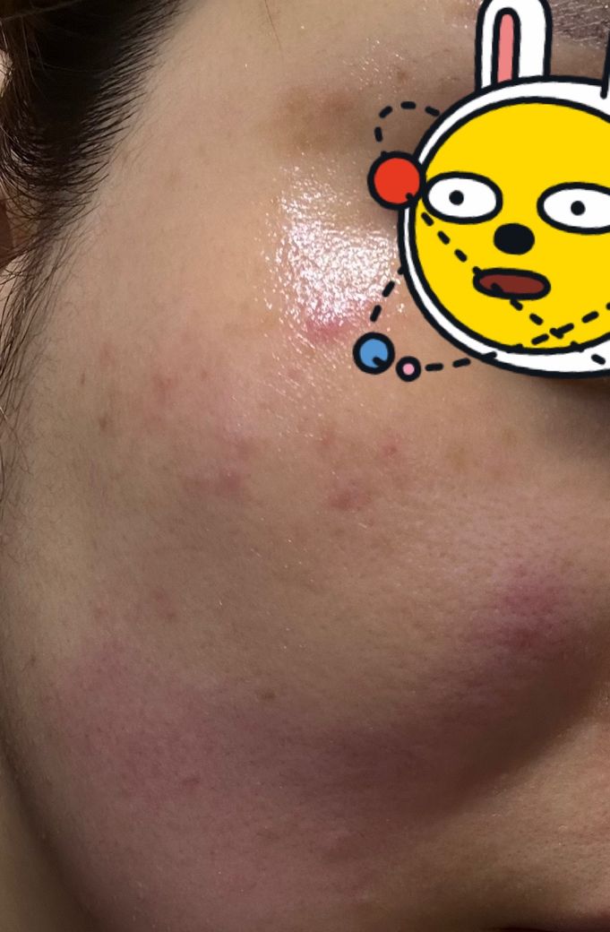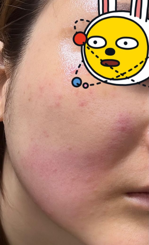 볼쪽은 더 붉게 경계선같이 생겨서 빨갛게 됐어요