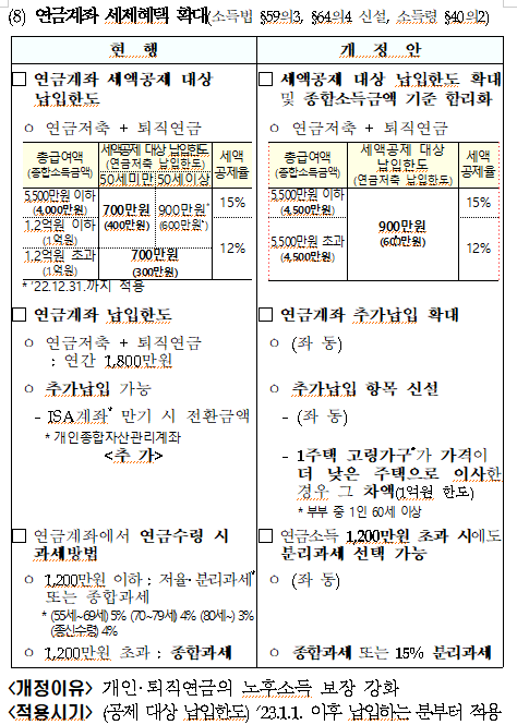 2. 개인연금계좌나 개인퇴직연금계좌(IRP)의 연간 불입금액의 16.5% 혹은 13.2%의 세액공제를 적용받을 수 있습니다. 아래 사진을 참고하시면 됩니다.