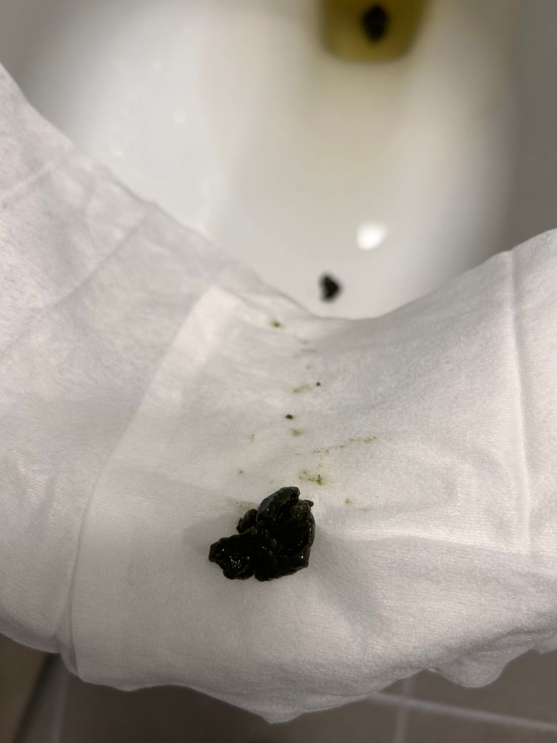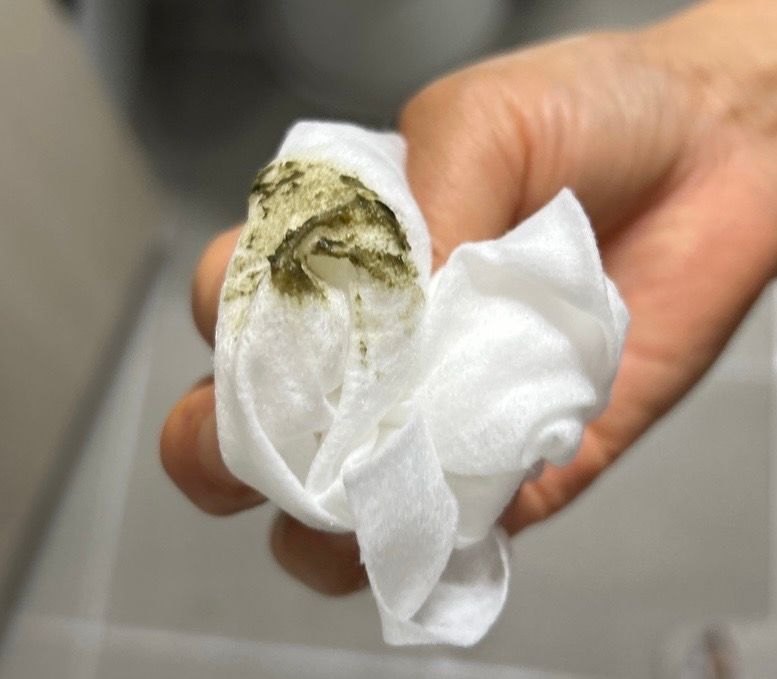 사진첨부할게요..!2번째 조금 변을 봤는데, 남은찌꺼기가 나왔나봐요. 이런식인데 검은변,혈변은 아닌거맞죠?ㅠ 사진첨부해요