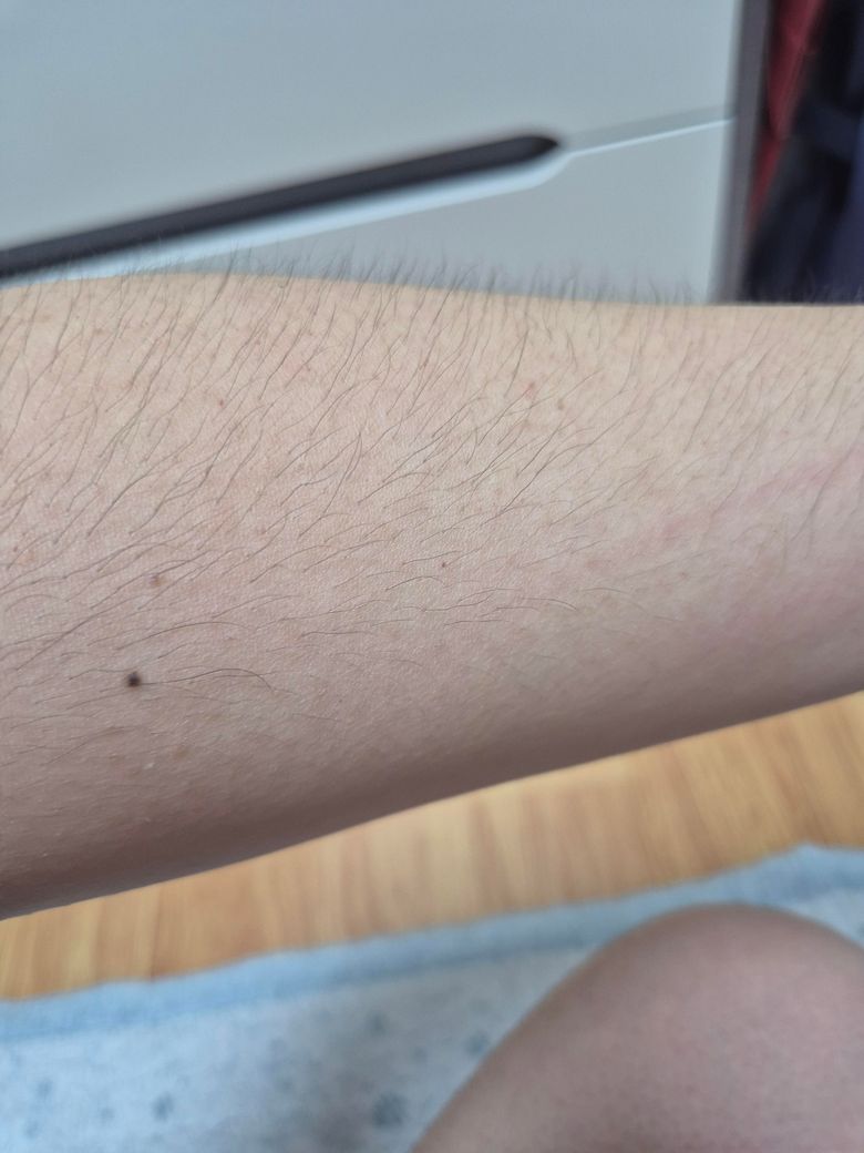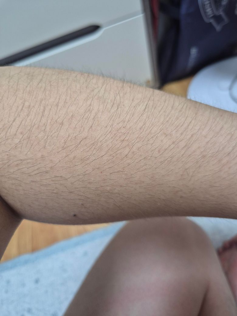 이런식으로 점을 찍은듯이 검불게 올라왔는데 왜이럴까요? 팔뚝, 어깨, 등, 다리에 모공각화증이 심한데 이게 팔뚝 아래로 내려온걸까요?