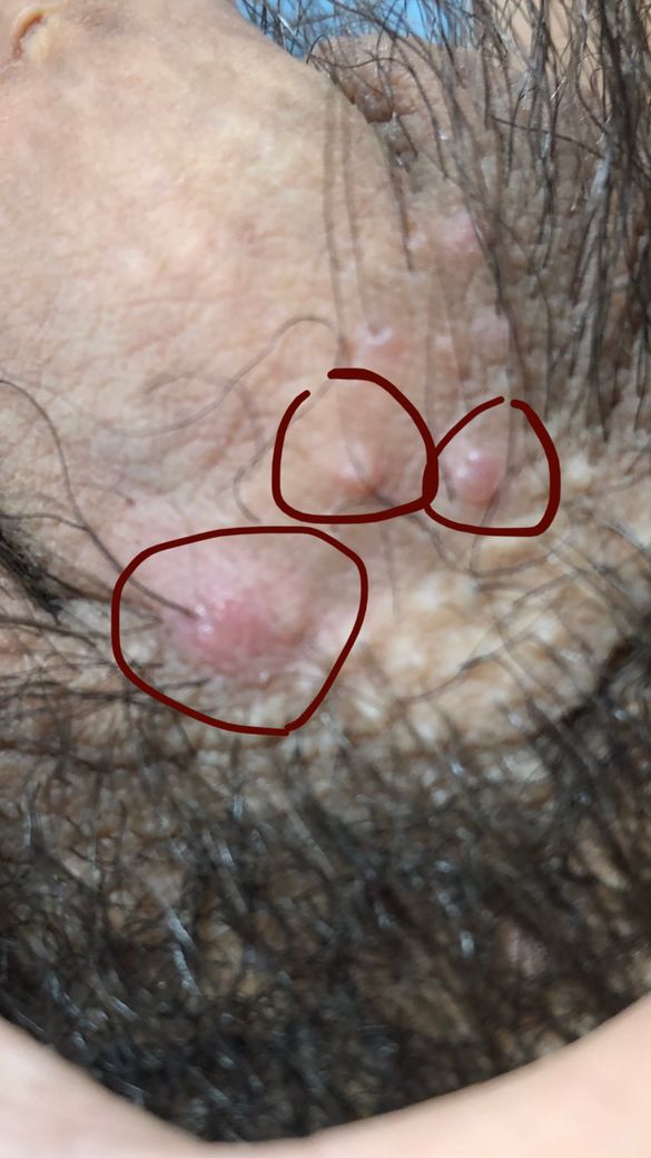 안녕하세요 23세 남성입니다. 마지막 관계는 10월 27일, 최근 관계는 한 파트너와 10월 25일과 27일 두 번입니다. 한 관계당 4-5번 정도 진행하였고 콘돔은 쓰지 않았고, 구강 성교도 행했습니다. 그런데 10월 30일부터 약간 신경이 쓰이긴 했는데 불편한 정도는 아니었습니다. 10월 31일 아침에 확인을 해보니 이 부위를 만질 시에 약간의 통증이 있었고(얼굴에 난 여드름을 누를 때 느끼는 통증과 비슷) 붉은 빛을 띄며 약간 볼록하게 올라와 있었습니다.
