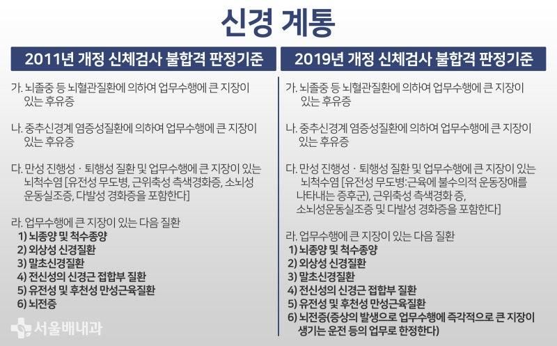 제시된 2019년 기준에서 뇌전증은 “증상 발생으로 업무수행에 즉각적으로 큰 지장이 있는 경우(운전 등)”로 한정되어 있습니다. 이는 발작이 예측 불가능하게 발생하여 즉각적 위험을 초래하는 직무를 전제로 한 규정입니다. 일반 행정직은 상시 운전이나 위험작업이 필수 직무가 아니므로, 규정 문언 그대로 해석하면 뇌전증 자체만으로 일률적 불합격 사유가 되지는 않습니다.