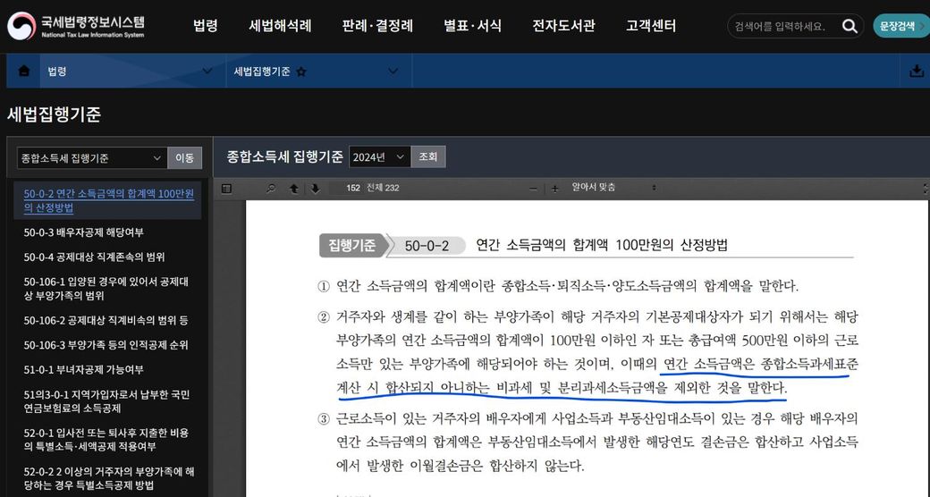 금융소득은 연 2천만원 이하까지 분리과세 대상이며 분리과세 소득은 부양가족 소득 요건에서 제외되므로 인적공제 가능합니다.