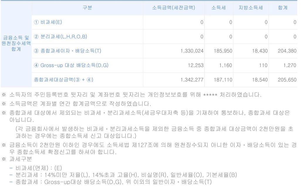 아래와 같이 금융소득원천징수명세서를 받았거든요