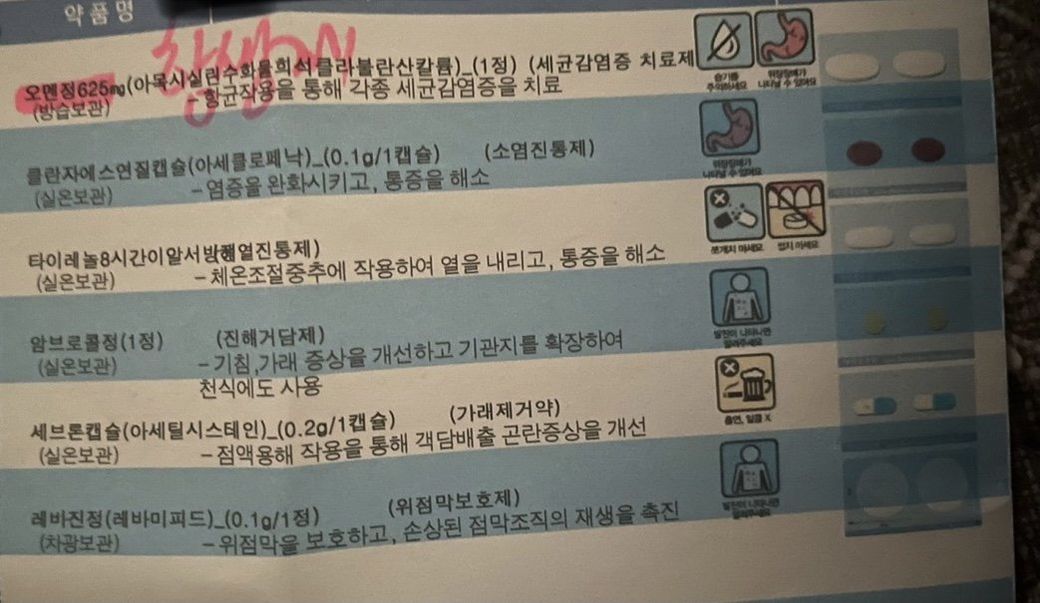 병원에서 처방받으신 약에 보니까 기침약이 있네요
