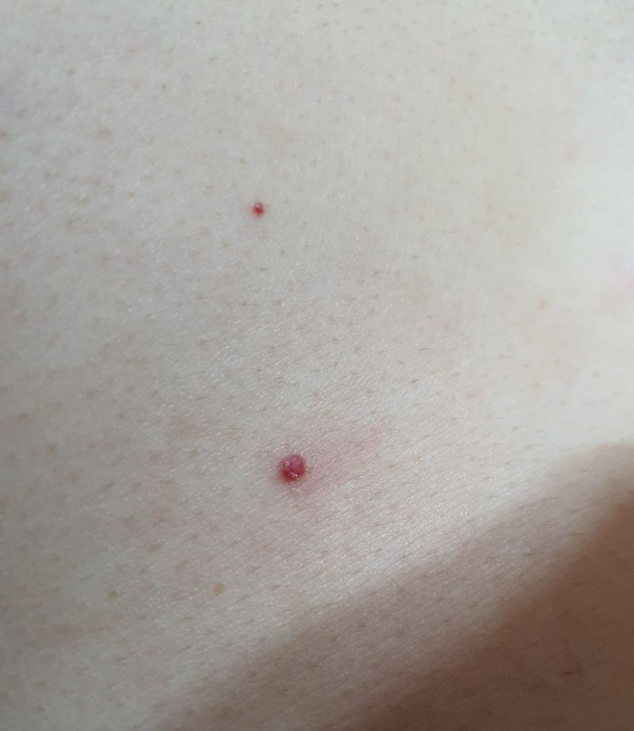 빨간 점은 체리혈관종일 가능성이 높습니다.