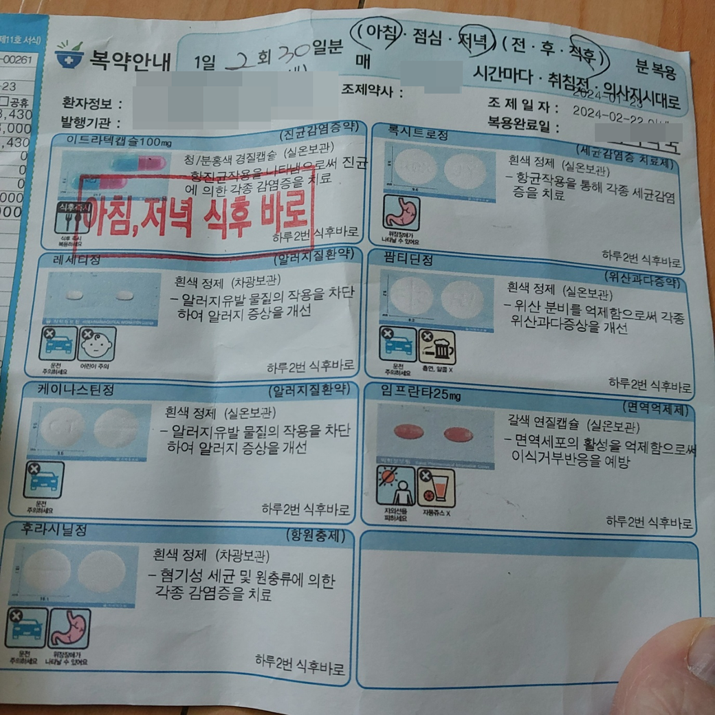증상이 있어서 피부과에서 아래에 약을 복용을 하고 있습니다.