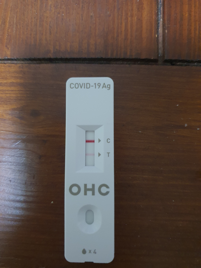 C, T에 선이 확인되며 자가진단키트 결과 양성으로 확인됩니다.