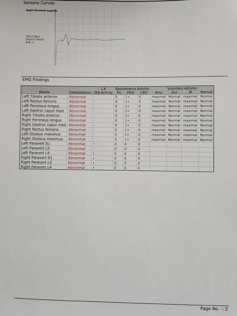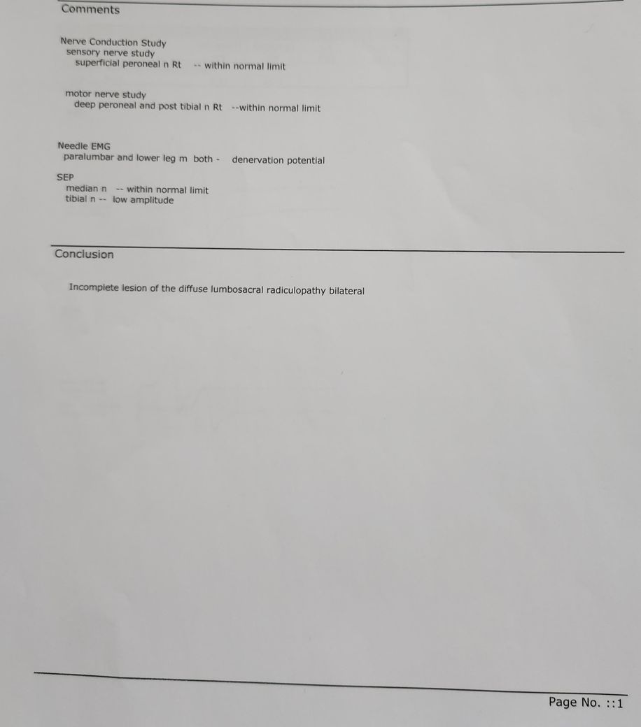 이런 소견이 나올려면 마미총증후군이 있었어야하는데 처음 디스크가 터졌을때는 양측 하지로 근력이 떨어지셨었나요?