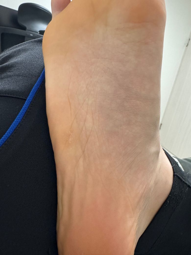 무좀일까요? 오른쪽 발에 약간 각질이 있습니다