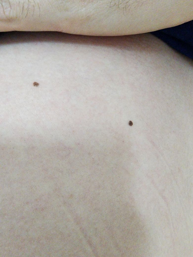 흑색종일까요 ? 어느 순간 부터 점이 생긴거 같은데 가슴쪽에 점이 2개 있습니다. 2번 사진은 왼쪽점이고 오른쪽 점은 3,4 사진입니다