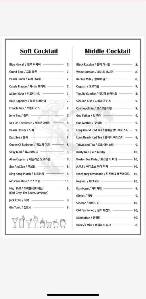 소프트한거 싫어하시면 미들 칵테일에서 롱아일렌드 아이스티 권하고