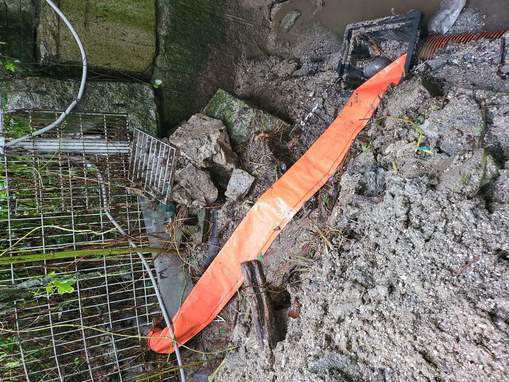 옆건물에서 무단으로 저희건물 펜스를 일부 잘라내고 오수관을 내어 물을 흘려보내고 있는데요.