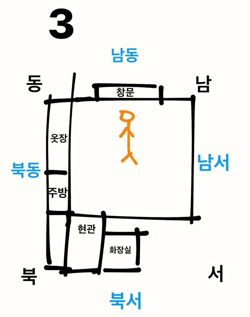 남동과 남서 세개의 사진중